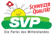 The Swiss People's Party (German: Schweizerische Volkspartei, SVP; Romansh: Partida populara Svizra, PPS), also known as the Democratic Union of the Centre (French: Union démocratique du centre, UDC; Italian: Unione Democratica di Centro, UDC), is a national-conservative[19][20] and right-wing populist[21] political party in Switzerland. Chaired by Marco Chiesa, it is the largest party in the Federal Assembly, with 62 members of the National Council[22] and 6 of the Council of States.