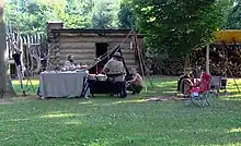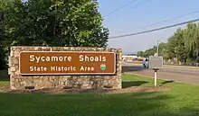 Sycamore Shoals State Historic Area is a state park located in Elizabethton, in the U.S. state of Tennessee. The park consists of 70 acres (28.3 ha) situated along the Sycamore Shoals of the Watauga River, a National Historic Landmark where a series of events critical to the establishment of the states of Tennessee and Kentucky, and the settlement of the Trans-Appalachian frontier in general, took place. Along with the historic shoals, the park includes a visitor center and museum, the reconstructed Fort Watauga, the Carter House (at a satellite location in Elizabethton)[1] and Sabine Hill (also at a satellite location in Elizabethton).[2] For over a thousand years before the arrival of European explorers, Sycamore Shoals and adjacent lands had been inhabited by Native Americans.[3] The first permanent European settlers arrived in 1770, and established the Watauga Association—one of the first written constitutional governments west of the Appalachian Mountains—in 1772. Richard Henderson and Daniel Boone negotiated the Treaty of Sycamore Shoals in 1775, which saw the sale of millions of acres of Cherokee lands in Kentucky and Tennessee and led to the building of the Wilderness Road. During the American Revolution, Sycamore Shoals was both the site of Fort Watauga, where part of a Cherokee invasion was thwarted in 1776, and the mustering ground for the Overmountain Men in 1780.[1][4]