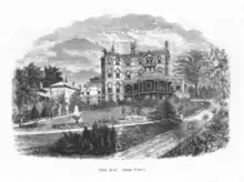 The oak-lined formal avenue, known as Cox's Walk, leading from the junction of Dulwich Common and Lordship Lane was cut soon after 1732[12] by Francis Cox to connect his Green Man Tavern and Dulwich Wells with the more popular Sydenham Wells.[13] When the poet Thomas Campbell lived in Sydenham (between 1805 and 1822) he visited his friend Dr Glennie, in Dulwich Grove.[14] After the relocation of the Crystal Palace in 1854, the Dulwich Estate made plots along Sydenham Hill available on long leases, and a series of large houses was built. Between the junction with Crescent Wood Road and Cox's Walk there were seven houses. One of the largest was The Hoo, standing almost opposite the present 36 Sydenham Hill.[5][15]