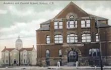 Due to the influx of people arriving in Sydney to work at the Steel Plant, a new Academy was built in 1901 to accommodate an increasing number of students. This three-story brick and stone building was located next to the previous Academy and contained modern facilities such as a chemical and physical laboratory as well as an assembly hall capable of seating up to 500 people. The $30,000 building later became Central School. It currently houses senior administration of the Cape Breton Victoria Regional School Board.[5]