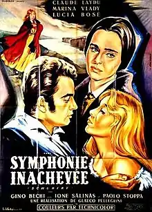 Symphony of Love (Italian: Sinfonia d'amore) is a 1954 French-Italian historical melodrama musical film directed by Glauco Pellegrini and starring Claude Laydu, Marina Vlady and Lucia Bosé. It is a biopic portraying the life of the composer Franz Schubert.[1] The French title release title was Unfinished Symphony (French: Symphonie inachevée),