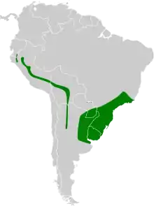 - S. r. acrita: north-central Paraguay, far southeastern Brazil's Santa Catarina and Rio Grande do Sul states, Uruguay, and northeastern Argentina south to Buenos Aires Province