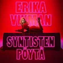 "Syntisten pöytä" is a song recorded by Finnish singer Erika Vikman, written by Kaisa Korhonen and Janne Rintala, and produced by Mika Laakkonen. The song was released through Warner Music Finland and Mökkitie Records on 21 August 2020, as the second single from Vikman's self-titled debut album. "Syntisten pöytä" went on to peak at number-3 on The Official Finnish Charts, becoming Vikman's second consecutive top ten hit, and her first number-one hit on the Finnish radio airplay charts.