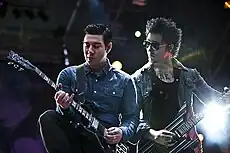 Brian Elwin Haner Jr. (born July 7, 1981), better known by his stage name Synyster Gates or simply Syn, is an American guitarist, best known as the lead guitarist of heavy metal band Avenged Sevenfold. He ranks No. 9 on Guitar World's best metal guitarists of all time.[1] Gates was voted as Best Metal Guitarist in the World by Total Guitar in 2016 and once again in 2017.[2][3]