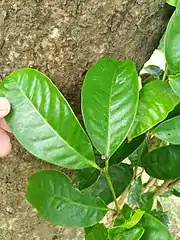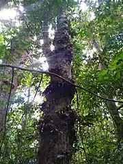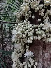 The fruit is not particularly palatable to humans.[1] The southern cassowary eats the fruit and flowers.[5] The odoriferous black ant (Anonychomyrma gilberti) makes extensive tunnels in the cauliflorous form, particularly at the bumps where flowers grow.[1]
