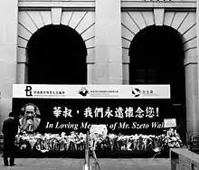 Exiled mainland dissidents Wang Dan and Wu'erkaixi had expressed their strong desire to attend the funeral. Pan-democrats petitioned the Hong Kong government to allow them to enter Hong Kong to attend Szeto's funeral on compassionate grounds under the one country, two systems principle,[44] although NPCSC delegate Rita Fan said the request represented a huge dilemma for the government as it would set a precedent.[45] On 10 January, Wang Guangya, director of the Hong Kong and Macao Affairs Office, declared that decision on whether to allow dissidents to enter was in the hands of the Hong Kong government; he expressed confidence that they would "handle it well".[46] On 26 January, the government announced that the application of Wang Dan to enter Hong Kong had been declined by after "careful consideration"; a spokesman said the decision was made based on the potential "consequences" of allowing him in. The decision was denounced by Wang, Wu'er Kaixi, and pro-democrat legislator Lee Cheuk-yan, saying that the government had surrendered the principle of "one country, two systems".[47]