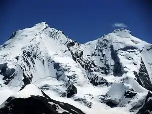 The Täschhorn (4,491 metres (14,734 ft)) is a mountain in the Pennine range of the Alps in Switzerland. There are no easy mountaineering routes to its summit, and it is regarded as being among the top ten 4,000-metre mountains in the Alps for difficulty, and "one of the highest, finest and least accessible 4000m mountains". It lies immediately north of the Alphubel, and south of the Dom within the Mischabel range, and is very similar in shape to the Dom when seen from the upper Zermatt valley.[1]: 118