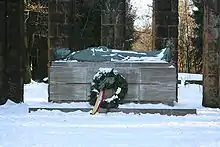 In 1930 a war memorial was unveiled to remember the fallen from the First World War; over 5,000 people climbed the Tönsberg for the opening ceremony. It was created by the sculptor, Berthold Müller-Oerlinghausen; a soldier lies on a sarcophagus framed by columns.[1]
