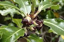 The seedlings of kōhūhū are unusual, as in some cases they have three or four seed leaves instead of the usual two.[5]