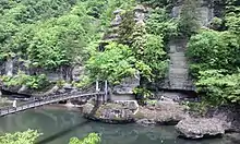The area was designated a natural monument in 1943 as a unique example of terrain formed during the Pleistocene epoch.[2] The cliff sides were carved out by the Agano River (known as the Ōkawa River in Fukushima Prefecture) over hundreds of years.