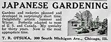 - ↑ Otsuka's garden business mailing address in advertisements placed between 1911 and 1922 coincided with the address of a Chicago Asian art import store, the Toyo Company (東洋商會, Tōyō Shōkai). Otsuka may have been a partner in this business with Tomihei Maruyama 丸山富平. The store and Otsuka's garden business mailing address moved to new addresses in 1916 and 1921. https://commons.wikimedia.org/wiki/File:1914-dec-keithsmagazine-crop.jpg