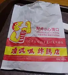 TKK Fried Chicken (Chinese: 頂呱呱; pinyin: Dǐngguāguā) is a Taiwanese chain of fried chicken restaurants.[1] Outside its Taiwan locations, TKK also has branches in China and the United States. TKK opened its first restaurant on 20 July 1974, in Ximending located in Taipei City. On 2 November 2013, TKK opened its first gastropub, TKK the BAR, in the Eastern District of Taipei to serve items from the original menu as well as other products exclusive to the bar, thereby becoming one of the only few fried chicken restaurants in the world to also operate a gastropub.[1][2]