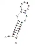 The primary mRNA for human TMEM241, isoform 1,[3] contains a 5' UTR hairpin loop conserved in primates. The primary mRNA for human TMEM241 isoform 1 contains binding sites in its 3' UTR for the miRNAs 520f-5p, 378a-5p, and 6866-5p.[4]