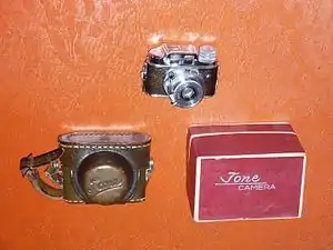 TONE camera was a sophisticated Hit-type camera using 17.5 mm paper backed film, introduced by Toyo Kobi Optical Company in occupied Japan in 1948.[1]