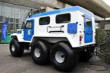 The TREKOL-39294 is a Russian six-wheeled amphibious all-terrain vehicle produced by TREKOL. The 39294 is available in two versions: passenger and freight and it uses large low-pressure tires. TREKOL manufactures the 39294 using UAZ and GAZ parts, which ensures easy operation, easy maintenance and repairs. The fiberglass body has a very low thermal conductivity and the possibility of operating at a temperature of −45 °C to 45 °C. The vehicle has a capacity, in the passenger models, for up to 8 people. Maximum speed −70 km/h. All-terrain vehicles may be equipped with petrol or diesel engines, as well as water jet to move through the water.