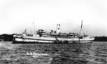 On 1 June 1915, the vessel was requisitioned again for military service.[6] Kanowna transported soldiers and supplies to Egypt, then made for England, where she was modified for use as a hospital ship.[6] After completion, Kanowna could carry 452 wounded in cots, along with a medical staff of 88 in addition to her regular crew.[7] Sailing in September, Kanowna was used to transport Royal Army Medical Corps personnel to locations throughout the Mediterranean, then collected wounded Australian personnel and transported them home.[7] She would make a total of 10 voyages between Australia and England in the next three years,[8] although some runs were made to England with British wounded.[7] In May 1917, the unrestricted submarine warfare campaign forced the ship to sail around Africa instead of through the Mediterranean: the nurses and medical staff were transported overland from Durban to London, and used to supplement hospital personnel until Kanowna arrived in July.[7] In October 1918, after the war's end, the hospital ship was sent to collect 900 British and Commonwealth prisoners-of-war that had been interred in Turkey.[7] Kanowna was returned to the AUSNC on 29 July 1919, and she resumed passenger and cargo service.[1][7][8]