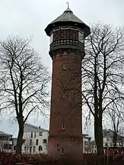 Taastrup Water Tower is a defunct water tower in Taastrup, a western suburb of Copenhagen, Denmark. The distinctive structure now serves as an observation tower and local landmark, readily visible when approaching Copenhagen from the west along Roskildevej.