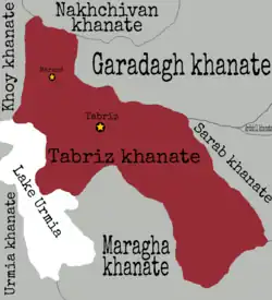 The Tabriz Khanate (Persian: خانات تبریز, Azerbaijani: تبریز خانلیغی) was a Caucasian Khanate from 1757 to 1799, centered around Tabriz and led by members of the Turkified Kurdish Donboli tribe.[1]