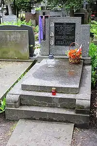 His last poem was a commentary on the catastrophic explosion of a German booby-trapped tank on 13 August, which killed three hundred people. The macabre sight after the explosion inspired Gajcy to write a poem that was so shocking and macabre that it was not published until 1964. Two days later, in the evening, Stroiński and Gajcy went to an outpost in a passable tenement house at Przejazd 1/3 Street. During the night, German sappers reached the basement under the massive edifice and laid explosive charges. At noon the next day there was an explosion. The Germans, for the first time in the Uprising, used a coal dust attack called Typhoon. Its destructive force destroyed the tenement completely, burying both SiN men under the heaps of rubble on 16 August 1944. Gajcy was posthumously awarded the Cross of Valour. The poet's body was exhumed by his family in the spring of 1946, and only then was it finally established where he had fallen. He was buried in the insurgents' quarters in the military Powazki cemetery. In his work, Jarosław Iwaszkiewicz referred to the circumstances of Gajcy's and Stroiński's deaths, writing in the poem Niepogrzebani [The Unburied]: "Two poets rose like flares into the air".[1]