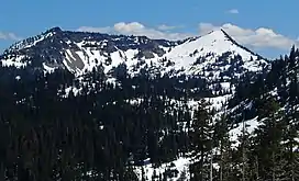 Tahtlum Peak is a 6,567-foot-elevation (2,002 meter) mountain summit located east-southeast of Chinook Pass in the William O. Douglas Wilderness. It's situated north of Dewey Lake in Yakima County of Washington state. Tahtlum Peak is part of the Cascade Range and its nearest higher neighbor is Dewey Peak, 1.61 mi (2.59 km) to the south.[1] The name tahtlum derives from Chinook Jargon which means ten.[3] Precipitation runoff from Tahtlum Peak drains into tributaries of the Yakima River.