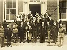 An art and craft exhibition at the Royal Hibernian Academy displayed 1,597 works, more than half entered for competition in 32 categories.[22] The overall "Tailteann Trophy" went to Seán Keating's Homage to Hugh Lane.[23] Other gold medallists included Margaret Clarke, Francis Doyle Jones, Letitia Hamilton, Power O'Malley, and Patrick Tuohy.[23]