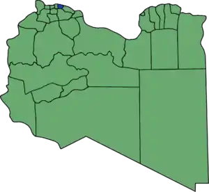 Tajura wa Arbaʽ (Arabic: تاجوراء والنواحي الأربع, romanized: Tarjūrāʾ wa an-Nawājī al-ʾArbaʿ) was one of the districts of Libya from 2001[1] to 2007. It consisted of eleven Basic People's Congresses,[1] similar to townships, and its capital was Tajura. In the 2007 administrative reorganization the territory formerly in Tajura Wa Al Nawahi Al Arbaʽ was transferred to the Tripoli District (Tarabulus District).[2]