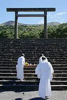 In November, usually on the 10th, the Tenson kōrin gojinka sai (天孫降臨御神火祭) takes place there.[2][3] It is part of the cultural area surrounding Kirishima-Jingū, a national significant cultural property,[4][5] mainly because it was the previous site of a shrine that was destroyed by a volcanic eruption from Mount Kirishima (specifically the Takachihonomine volcano peak).[4][5]