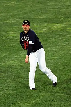 Takahiro Okada (岡田 貴弘, born February 9, 1988, in Suita), playing as T-Okada (T-岡田), is a Japanese professional baseball outfielder and first baseman for the Orix Buffaloes in Japan's Nippon Professional Baseball.[1]