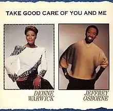 "Take Good Care of You and Me" is a duet by American singers Dionne Warwick and Jeffrey Osborne. It was written by Burt Bacharach, Carole Bayer Sager, and Gerry Goffin, while production was helmed by Bacharach and Bayer Sager. Initially recorded for Warwick's 1987 album Reservations for Two (1987), it was left unused in favor of their other duet "Love Power" and later served as the lead single from her compilation album Greatest Hits: 1979–1990 (1989). "Take Good Care of You and Me" peaked at number 25 on the US Adult Contemporary.[1]