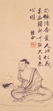 Takechi Zuizan (武市瑞山), (October 24, 1829 – July 3, 1865), also known as Takechi Hanpeita (武市 半平太), was a samurai of Tosa Domain during the Bakumatsu period in Japan. Influenced by the effects of the Perry Expedition, Takechi formed the Tosa Kinnō-tō (土佐勤王党, Tosa Imperialism party) which was loyal to the ideals of the sonnō Jōi movement. The Kinnō-tō killing of Yoshida Tōyō on 6 May 1862, led to sonnō jōi becoming the prevalent philosophy of Tosa Domain, but he was later imprisoned and forced to commit seppuku by the former daimyō of Tosa Domain Yamauchi Yōdō.