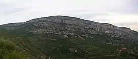 Geologically the Talaies d'Alcalà is a karstic formation with numerous shafts and caves.[1] It is a southern prolongation of the Catalan Pre-Coastal Range that formed 25 million years ago as part of the Alpine orogeny. Geologically the section formed by the Talaies d'Alcalà - Santa Magdalena de Polpís/Alcalà de Xivert Valley - Serra d'Irta is very similar to the section formed by the Serra del Montsià - Ulldecona/Freginals Valley - Serra de Godall further north. These sets of parallel mountain ranges and valleys form the transition between the Mediterranean System and the Iberian System.[2]