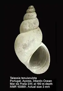 - ↑ Talassia tenuisculpta (Watson, 1873). Gofas, S. (2009). Talassia tenuisculpta (Watson, 1873). In: Bouchet, P.; Gofas, S.; Rosenberg, G. World Marine Mollusca database. Accessed through the World Register of Marine Species at http://marinespecies.org/aphia.php?p=taxdetails&id=141895 on 14 August 2010 .
