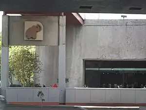 The station logo depicts a stylised image of a mammoth, with raised trunk and tusks.[2][3] During the construction of this station, the fossilised remains of a mammoth (Mammuthus meridionalis) were dug up by an excavation crew.[2] The fossil is now exhibited in a display in the station.[2] The station was opened on 29 August 1981.[4]