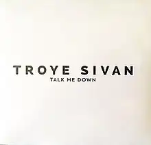 "Talk Me Down" (stylized in all caps) is a song by Australian singer and songwriter Troye Sivan from his debut studio album Blue Neighbourhood (2015). It was written by Sivan, Bram Inscore, Brett McLaughlin, Allie X, and Emile Haynie, and was produced by Haynie and Inscore.[1] The song was first released as a promotional single along with the pre-order of the album on 16 October 2015, and was released as the third official single on 26 May 2016.[2][3]