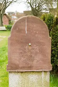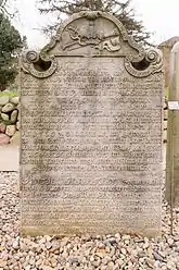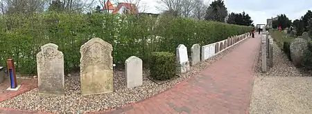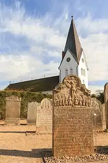 The Talking Gravestones of Amrum (German: Sprechende Grabsteine), also known as the Story-telling Gravestones (Erzählende Grabsteine), are historic artifacts on the German island of Amrum, one of the North Frisian Islands off the west coast of the Jutland Peninsula. They stand in a legally protected section of the St. Clemens Church cemetery in the village of Nebel. The gravestones, totaling 152, are inscribed with sometimes detailed accounts of the occupations, life histories, social rank and families of the deceased. The best-known gravestone is for Hark Olufs, an early 18th-century seafarer and folk hero.[1][2][3] Similar objects can be found at the neighbouring island Föhr.