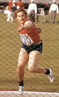 Tamara Natanovna Press[nb 1] (10 May 1937 – 26 April 2021)[1] was a Soviet athlete who dominated the shot put and discus throw in the early 1960s. She won three gold medals and one silver medal at the 1960 and 1964 Olympics and three European titles in 1958–1962. Between 1959 and 1965, she set 11 world records: five in the shot put and six in the discus. Domestically, she held 16 national titles, nine in the shot put (1958–66) and seven in the discus (1960–66).[2]