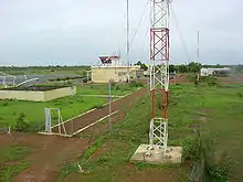 Airport telecommunication antennas and towers, with terminal in background, 2006.