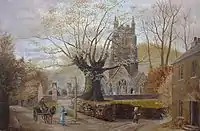 Just outside the eastern boundary of the churchyard stands an ancient hollow oak tree called the Copleston Oak believed to date from the 17th century. It is named after a Lord of the Manor, perhaps Christopher Copleston (1524–1586) or according to Prince (d. 1723) John IV Copleston (1546/9 – 1608),[3] whose monument is inside the church, who supposedly stabbed his godson to death outside the church following a dispute.