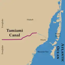 The Tamiami Canal or C-4 Canal, is a canal located in southern Florida in the United States. It flows in a west to east direction from the western part of the state in the Everglades past the Miami International Airport to a salinity control center near the Miami River. It averages 8 feet (2.4 metres) in depth and is over 100 feet (30 metres) wide in some areas.