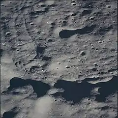 Oblique Apollo 17 panoramic camera image with Tamm above center and van den Bos below center