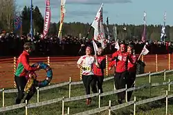 Pyrintö's women's team winning Tiomila in 2011.