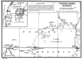 Map of the Tanzania-Uganda border. Demonstrates the location of Bukoba in relation to the border.