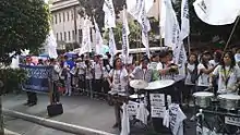 ![]() A rally of members of Tanggol Wika and other groups calling for the junking of the Philippine government's K to 12 program, held in front of the Philippine Supreme Court (2016). | |