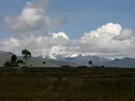 ![]() Huallanca mountain range and Tancancocha as seen from the archaeological site of Huánuco Pampa | |