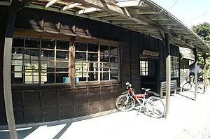 The station has a single island platform connected to a small wooden station building by a level crossing. The station is unattended. It retains much of the atmosphere of the early Shōwa period and is often used as a set for movies and TV dramas.