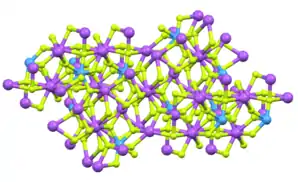 Section of the Na3TaF8 structure (Ta = turquoise, F = green).