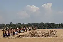 The project would affect at least 32 communities and 2,000 square kilometres (770 sq mi) of indigenous territory, mostly occupied by people of the Munduruku ethnic group.[8] The São Luiz do Tapajós Dam would flood about 7% of the Sawré Muybu Indigenous Territory, and the Boa Fé village would have to be relocated.[9] As of 2010 Eletronorte had not applied for registration with the National Electricity Agency to start feasibility studies for the Chacorão plant, since it would flood parts of the Mundurucu and Sai-Cinza indigenous territories. A spokesman said that without a decree to regulate the constitution there was no way to undertake projects in indigenous territories.[2]