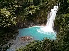 The scientific name Tlalocohyla celeste for the species was chosen because of the light blue coloration observed in the axillary membranes and male vocal sac.[2] The name was given as a tribute to the turquoise waters of a nearby river, the Río Celeste.[3]