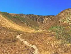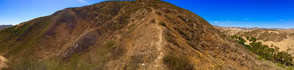 Tapo Canyon Regional Park is an open-space park and camping ground administered by the Santa Monica Mountains Conservancy. [3][4][5] It is situated in the midst of the many canyons and rolling hills found in this particular region of northern Simi Valley. Today, the park offers recreational activities as mountain biking, horseback-riding, hiking, as well as campgrounds, picnic areas, and sixteen RV camp hook ups.[6] The elevation here goes up as far as 2300 feet, which offers great panoramic views along much of its hiking trails up on the hills.[7][8][9] It is a 3.4 mile hike south of the Santa Clara River in Piru, CA, and about 4 miles west of Pico Canyon in Santa Clarita, Los Angeles County.
