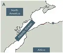 - ↑ Labails, C., Olivet, J., Aslanian, D., Roest, W., 2010. An alternative early opening scenario for the Central Atlantic Ocean. Earth and Planetary Science Letters, Issue 297, pages 355-368
